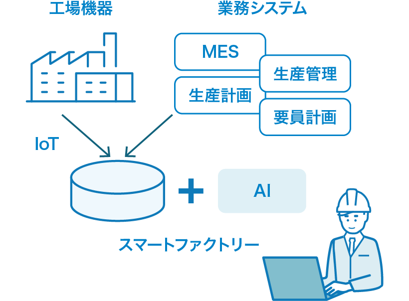 私たちは日立のノウハウを用いて、業務システムだけでなく工場にある機器のIoT化とIoTや業務システムで得られたデータを利用したAI活用など、スマートファクトリーを実現しています。