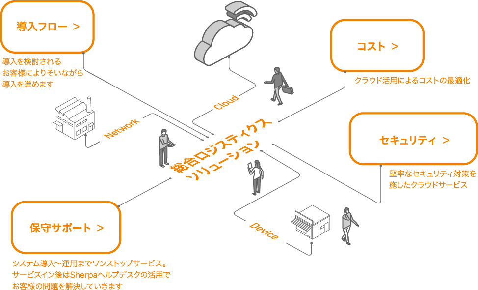 Sherpa専用のサポートデスクでお問い合わせを受け付け、お客様の運用に沿ったサポートを行います。