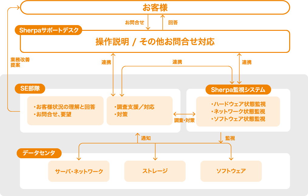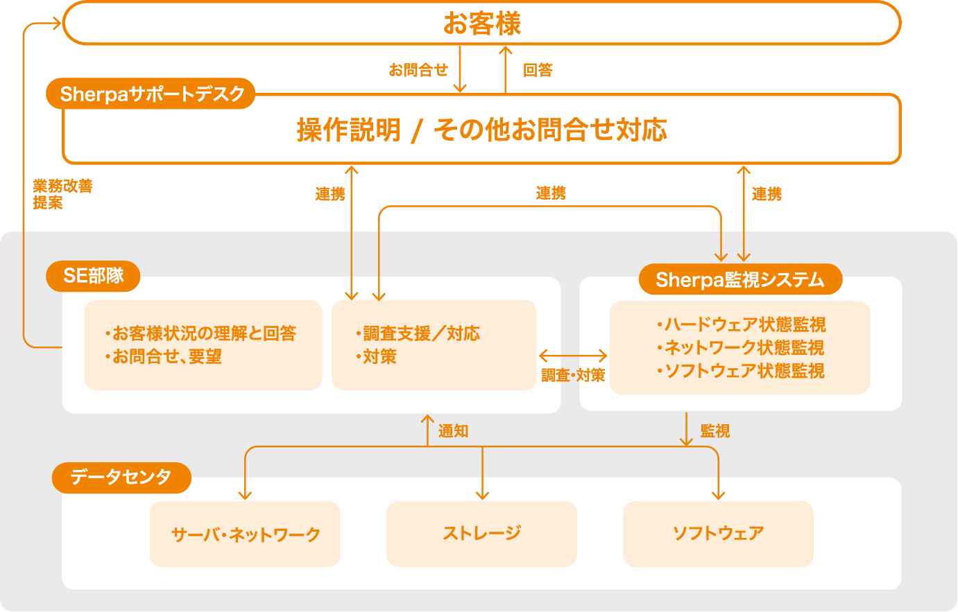 操作説明など各種お問い合わせの対応やシステムに関する専用窓口です。 システムを常時監視し、迅速に対応することでお客様の業務の継続に貢献します。 受付時間:平日9:00〜17:00 システム監視24時間365日、常時監視しております。